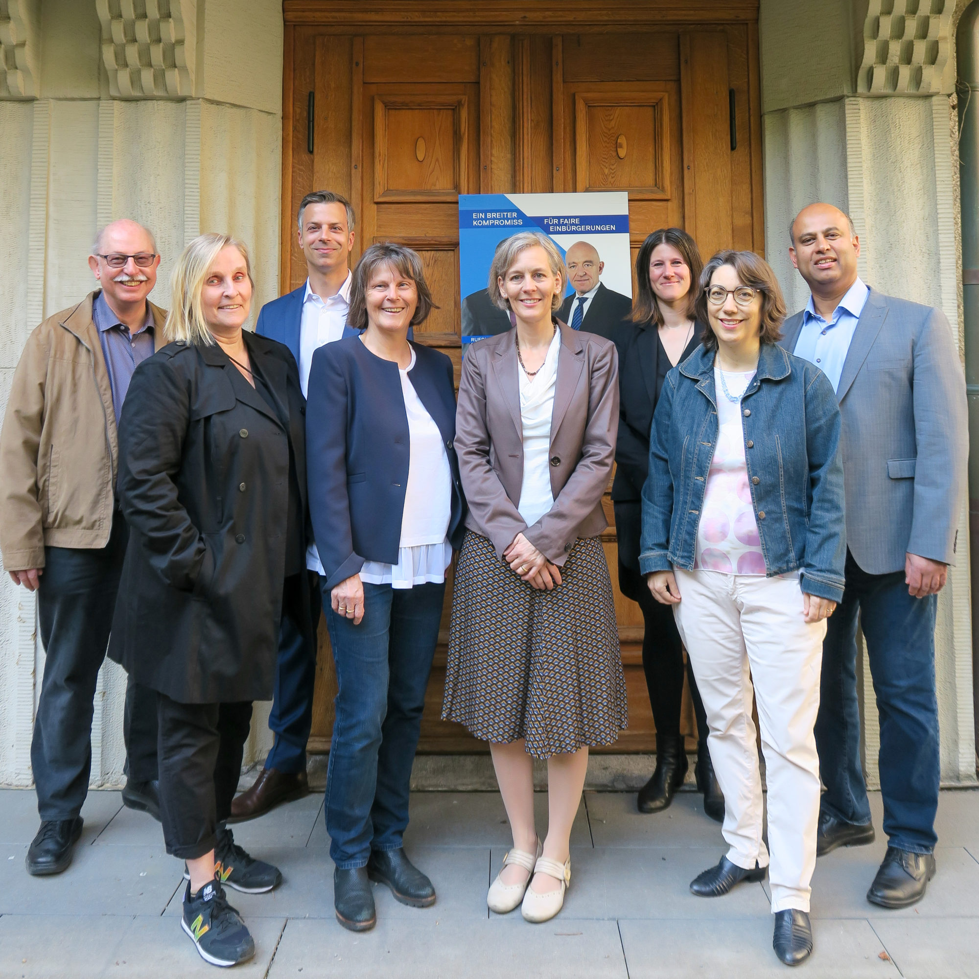 Von links nach rechts: Walter Meier (EVP), Isabel Garcia (Secondas), Michael Biber (FDP), Karin Fehr (Grüne), Sonja Gehrig (GLP), Sibylle Marti (SP), Anne-Claude Hensch Frei (AL), Jean-Philippe Pinto (Die Mitte)
